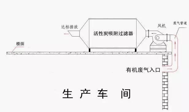 有机排气设备处理原理:通过风管收集生产过程中的有机废气,采用活性碳塔吸收废气,达到生产环境良好及排放达标之目标。